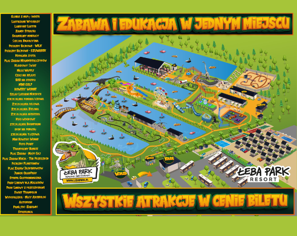 By using our Resort and unlimited access to the Family Amusement Park "Łeba Park," you get a price for a family of 4 persons (2+2) - 340 PLN, and for a family of 3 persons (2+1) - 265 PLN.
